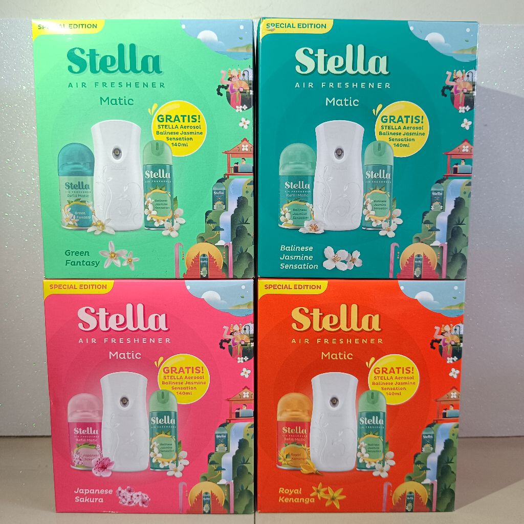 Stella Alat Matic Box Set + Reffil Isi Ulang + Baterai + Bonus Stella Spray 140 Ml seharga 10.000 | Pengharum Ruangan Otomatis