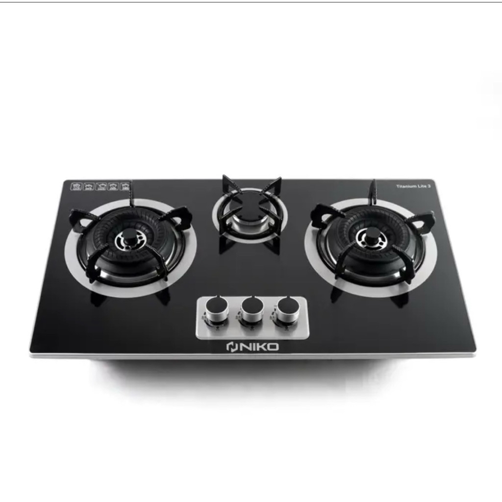 Niko Titanium Lite 3 Kompor Gas Tanam Stenlis Steel / Kompor Kaca Mewah Api Biru Sni Original Garansi Resmi