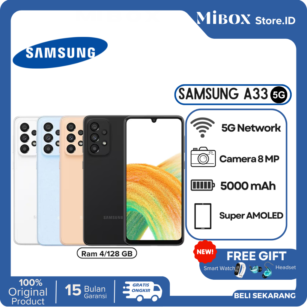 Samsung A33 5G 8/256 GB,Super AMOLED, 90Hz,Gorilla Glass 5,Li-Po 5000 mAh New Resmi