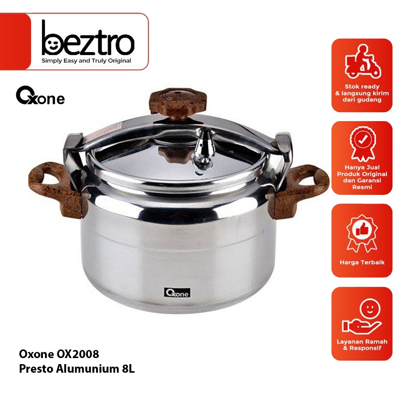 Oxone Panci Presto Alumunium Ox2008 – Alumunium Premium Pressure Cooker Pelunak 8 Liter Ox 2008