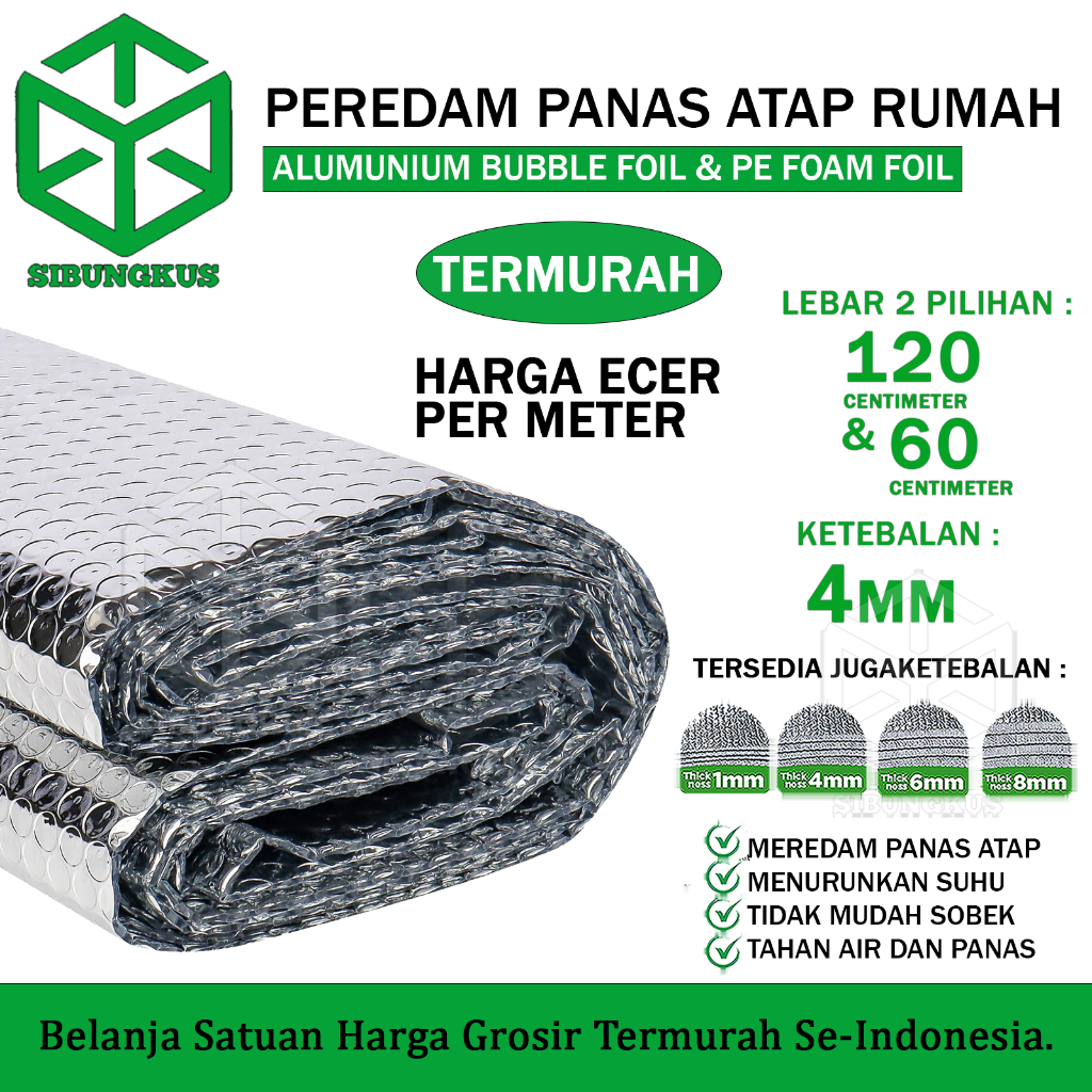 Peredam Panas Atap Rumah Bubble Alumunium Foil Foam Insulation PE Metalizing 1mm 4mm 6mm 8mm Roll Ecer