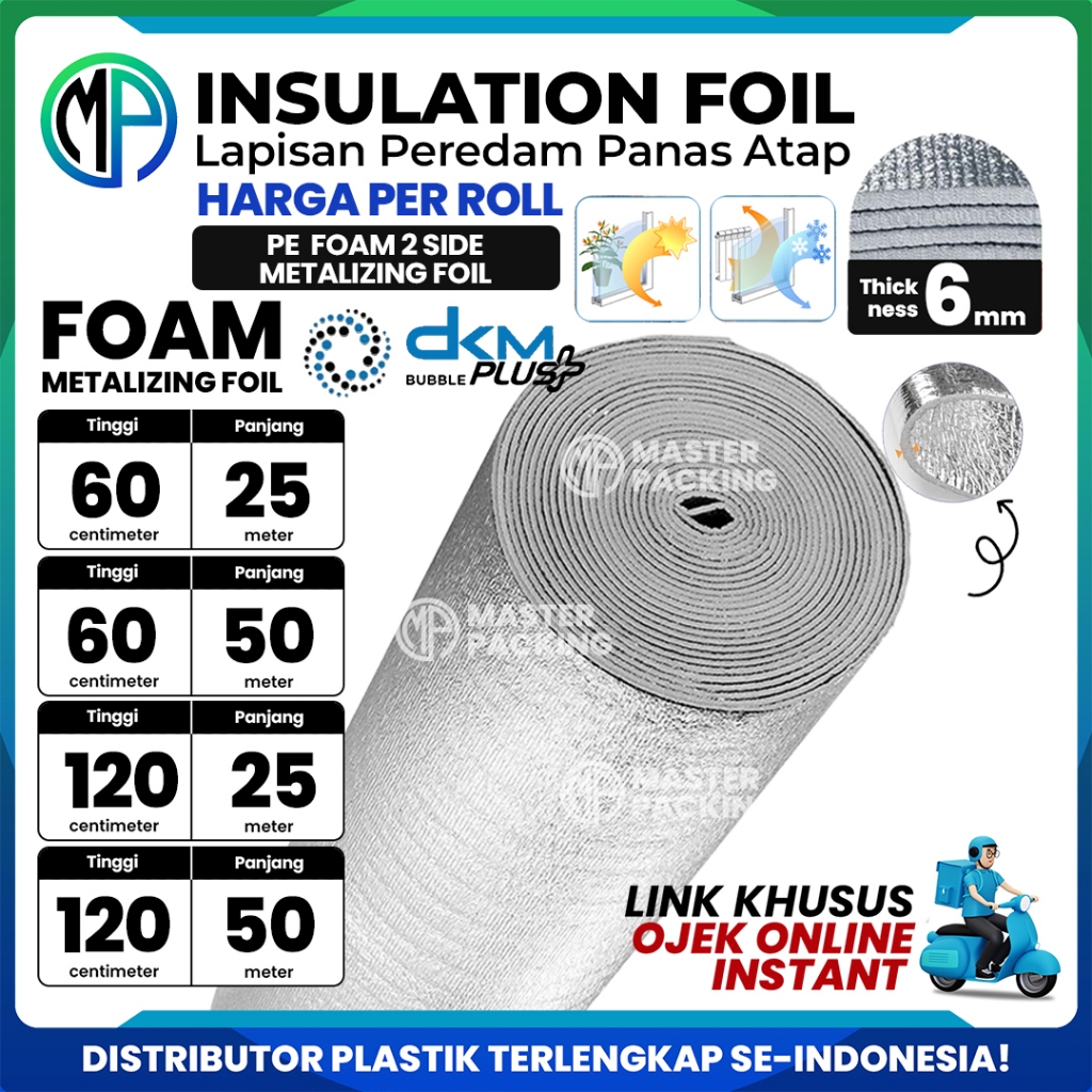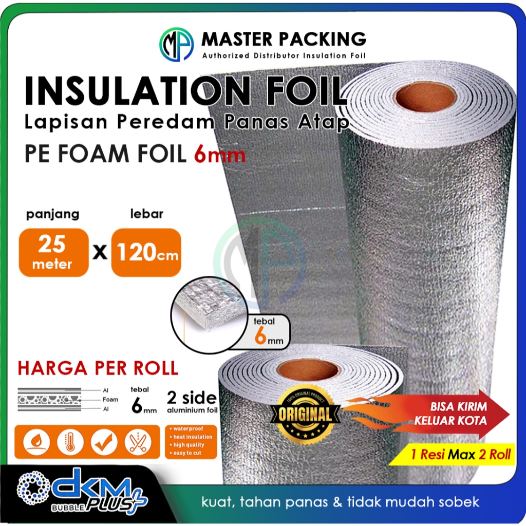 Peredam Panas Atap PE Foam 6mm Insulation Foil Roll 120cm x 25mtr /Busa Bubble Metalizing DKM [OJOL]