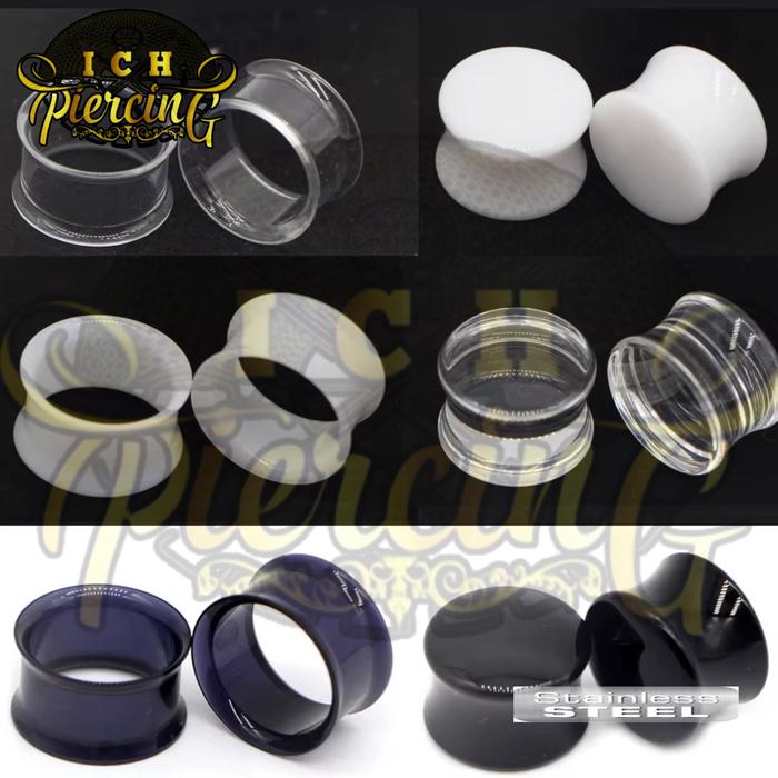 CH PIERCING 1PC ANTING TUNNEL PIERCING PLUG AKRILIK LUBANG HITAM DAN TRANSPARAN/ ACRILYC EARRING PLUG /TUNNEL - HITAM (1