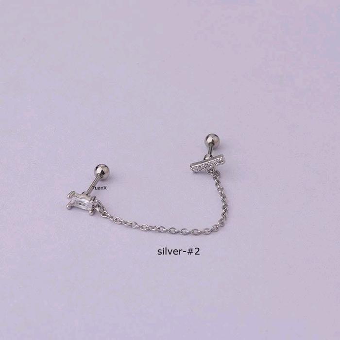 1PCS ANTING STAINLESS STEEL DOUBLE PIERCED CHAIN EARRINGS FOR WOMEN FLOWER ZIRCON PIERCING STUD EARRINGS FASHION JEWELRY