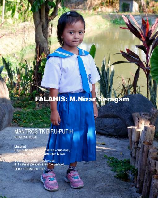 Seragam Mantros TK Biru Bahan Katun S-XXL