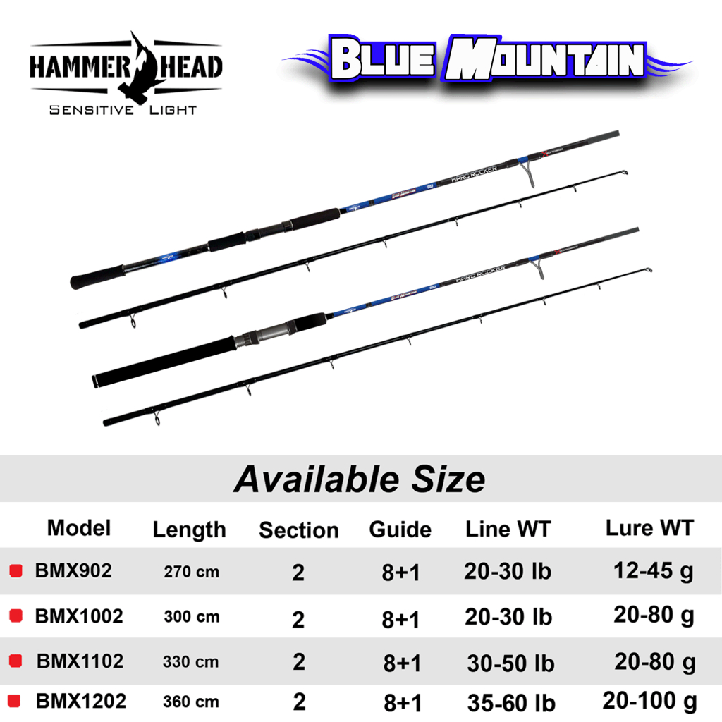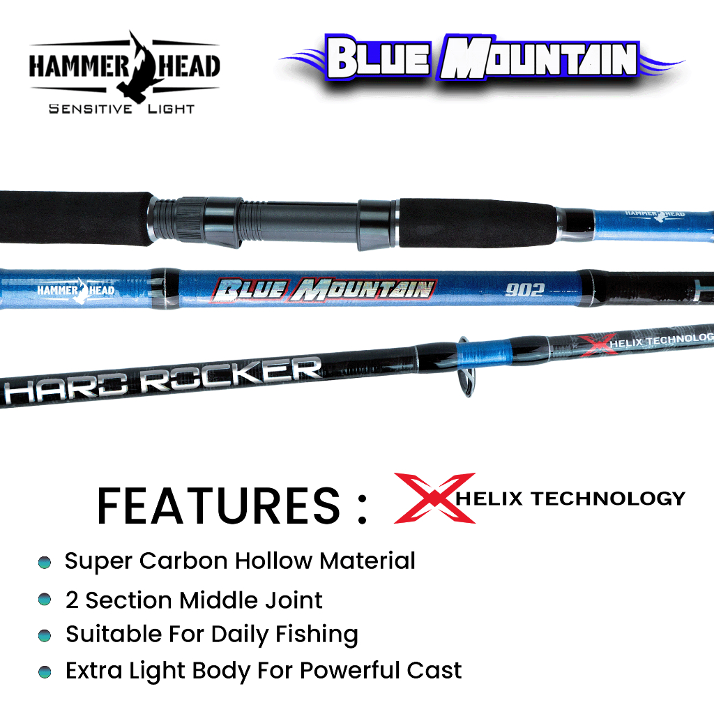 Hammer Head Joran Spinning Blue Mountain 240Cm - 300Cm Carbon Hard Untuk Casting Dan Rock Fishing