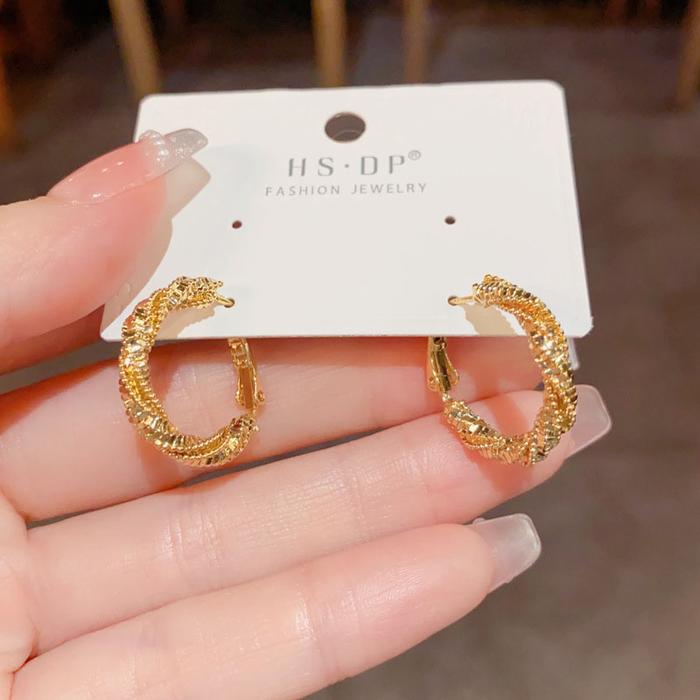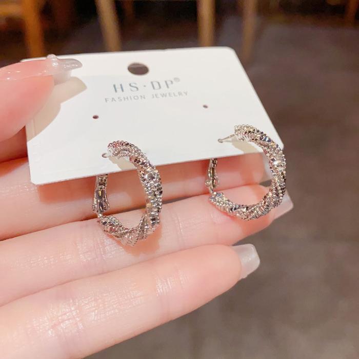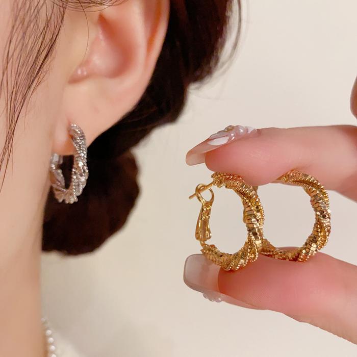 EAR PARTNER-ANTING BUNGKUS LOGAM PUTAR PERAK SEDERHANA MODE KOREA ANTING GAYA DINGIN MEWAH RINGAN YANG DIPERSONALISASI U
