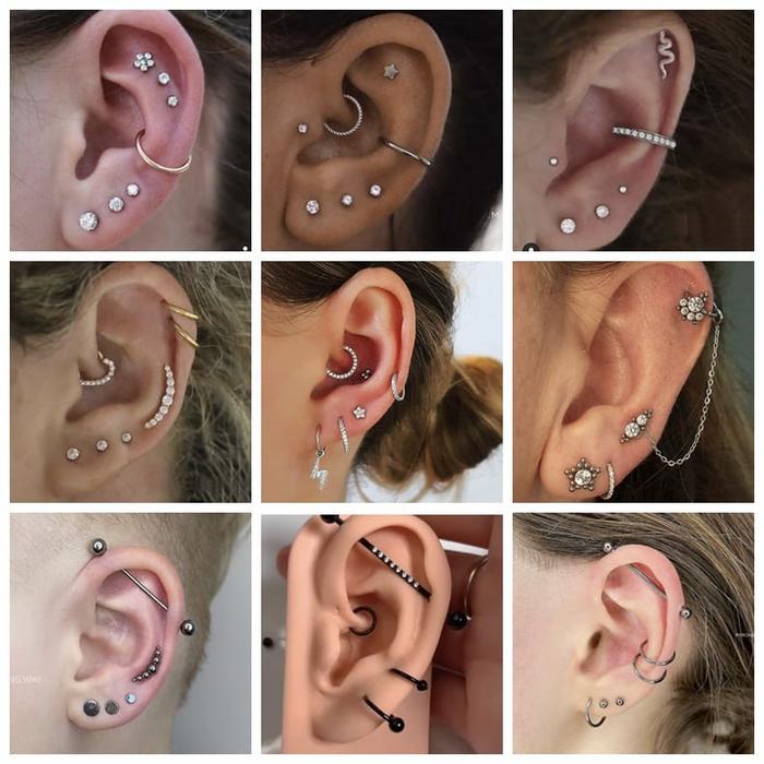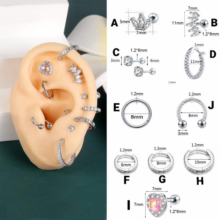 PIERCING EARLOBE HELIX TRAGUS CONCH ROCK RING HOOP STAINLESS STEEL A-J - J