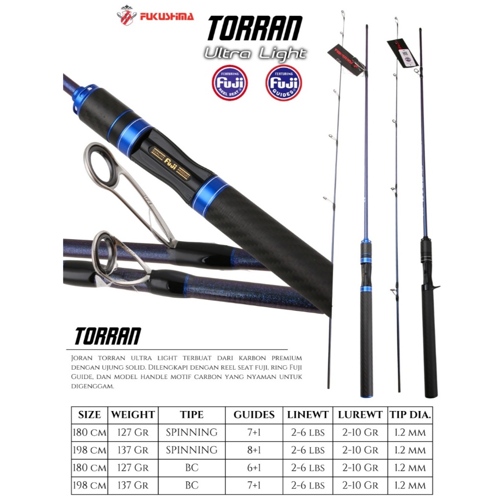 Joran Ul Ultralight Carbon Solid Spinning Baitcasting 2-6 Lbs Fuji 180 198 Cm Fukushima Torran