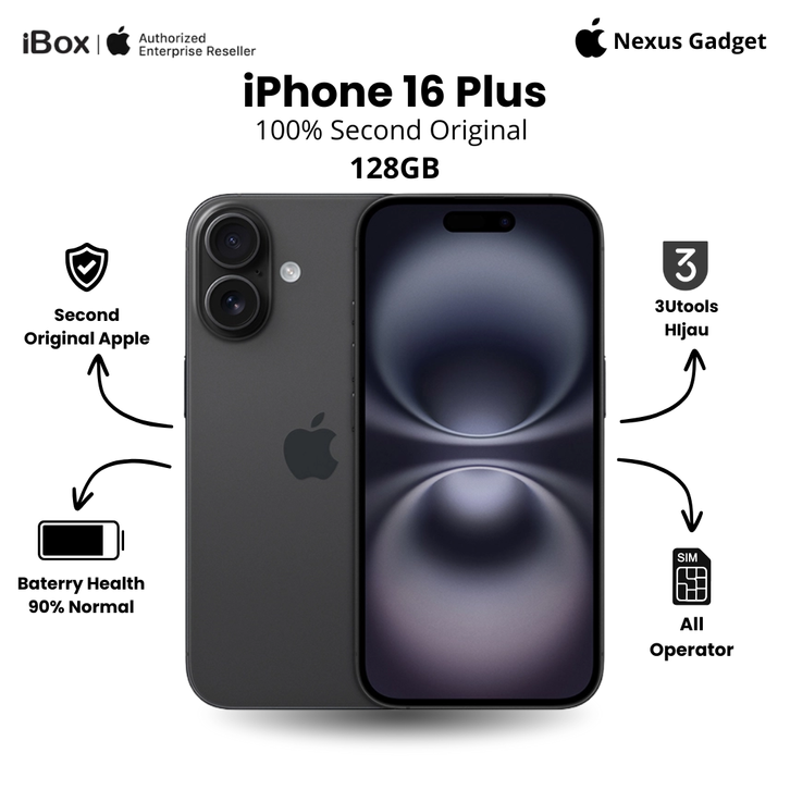 [Mall] Apple iPhone 16 Plus 128GB Black Second Original 100% Mulus New Ibox IP 16 Fullset Like New Promo Garansi Resmi
