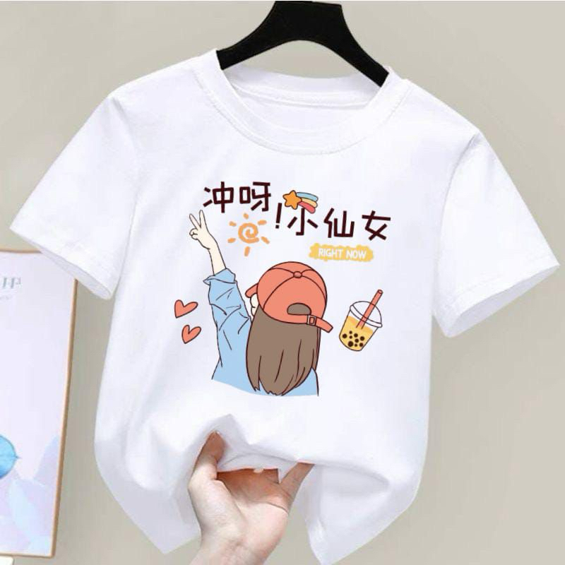 Baju Kaos Anak Perempuan 100rb Dapat 5-6pcs Motif Cewek Boba Untuk Umur 2-14 Tahun Bahan Katun