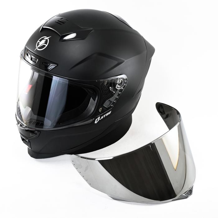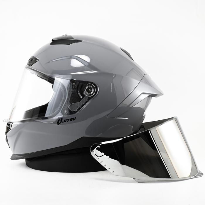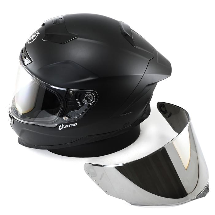 PAKET GANTENG HELM JITSU FULL FACE AIR 1 TERBARU FREE KACA VISOR IRIDIUM SILVER MOTORCYCLE SPORTY - BLACK GLOSS, CLEAR &