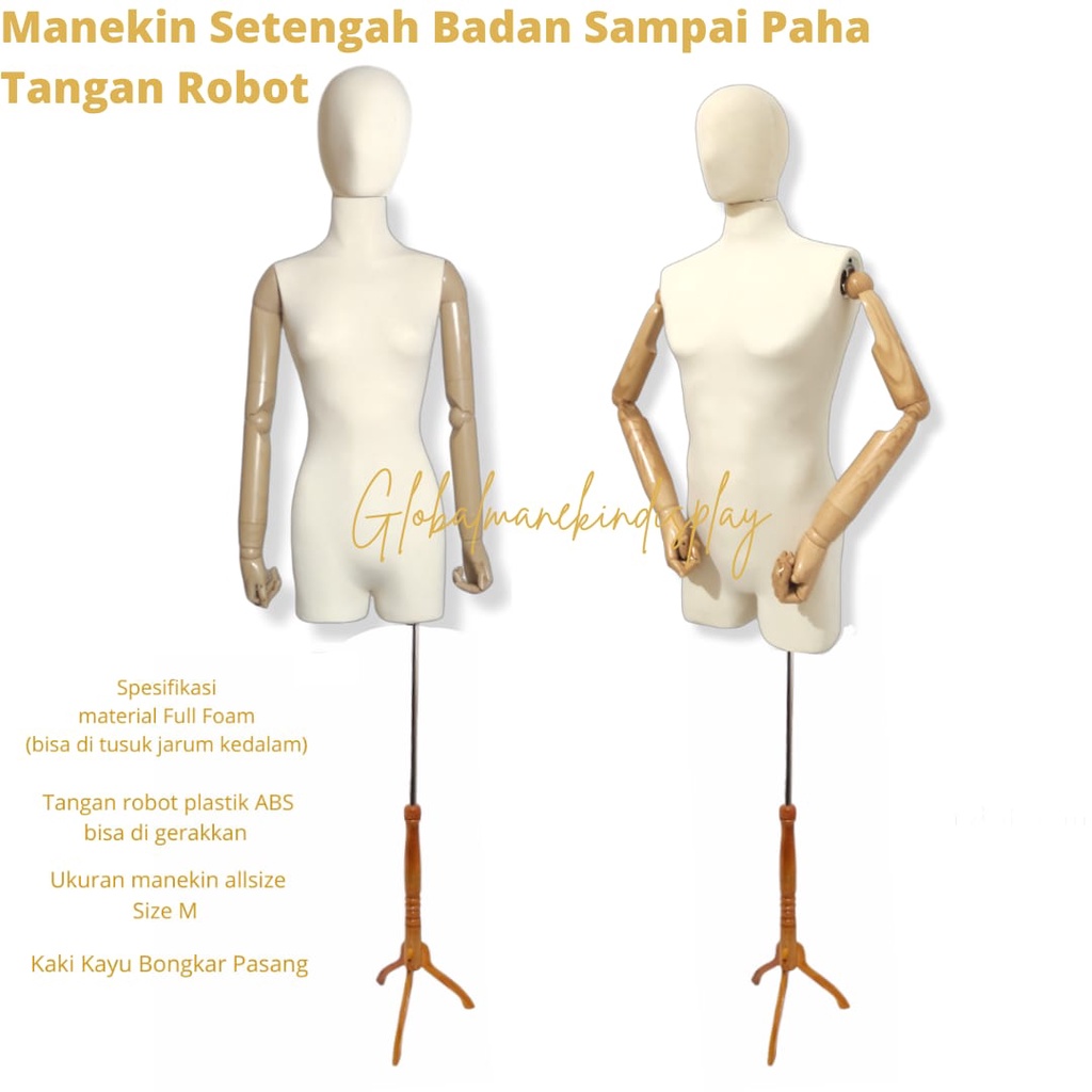 Manekin Wanita / Manekin Tangan Kayu - SUDAH TERMASUK KAKI BESINYA