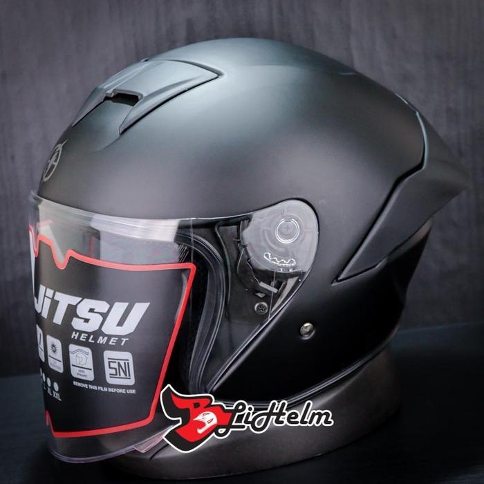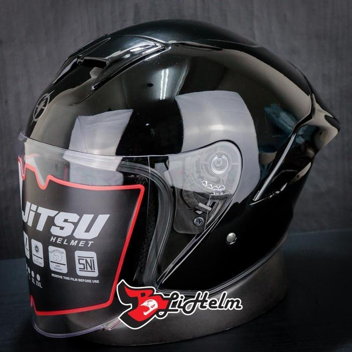 JITSU HELM JS1 SERIES SOLID | HALF FACE SINGLE VISOR DDRING - BLACK GLOSSY, L