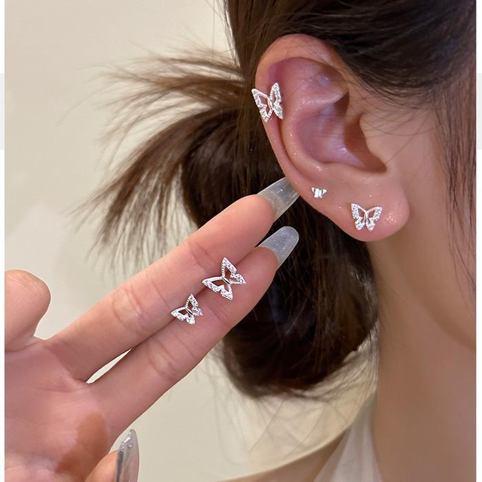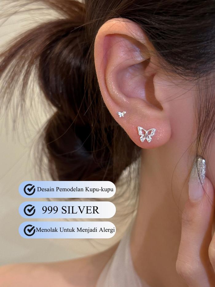 EAR PARTNER- 999 SILVER ANTING-ANTING KUPU-KUPU PERAK UNTUK WANITA, MENJAGA LUBANG TELINGA DENGAN BATU ZIRKONIA, ANTING-