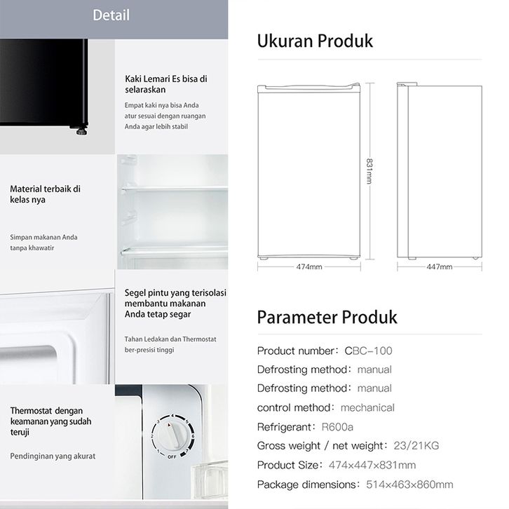 KULKAS CHANGHONG 1 PINTU TERBARU CBC 100 50 LITER MINI SATU MURAH 100L 50L