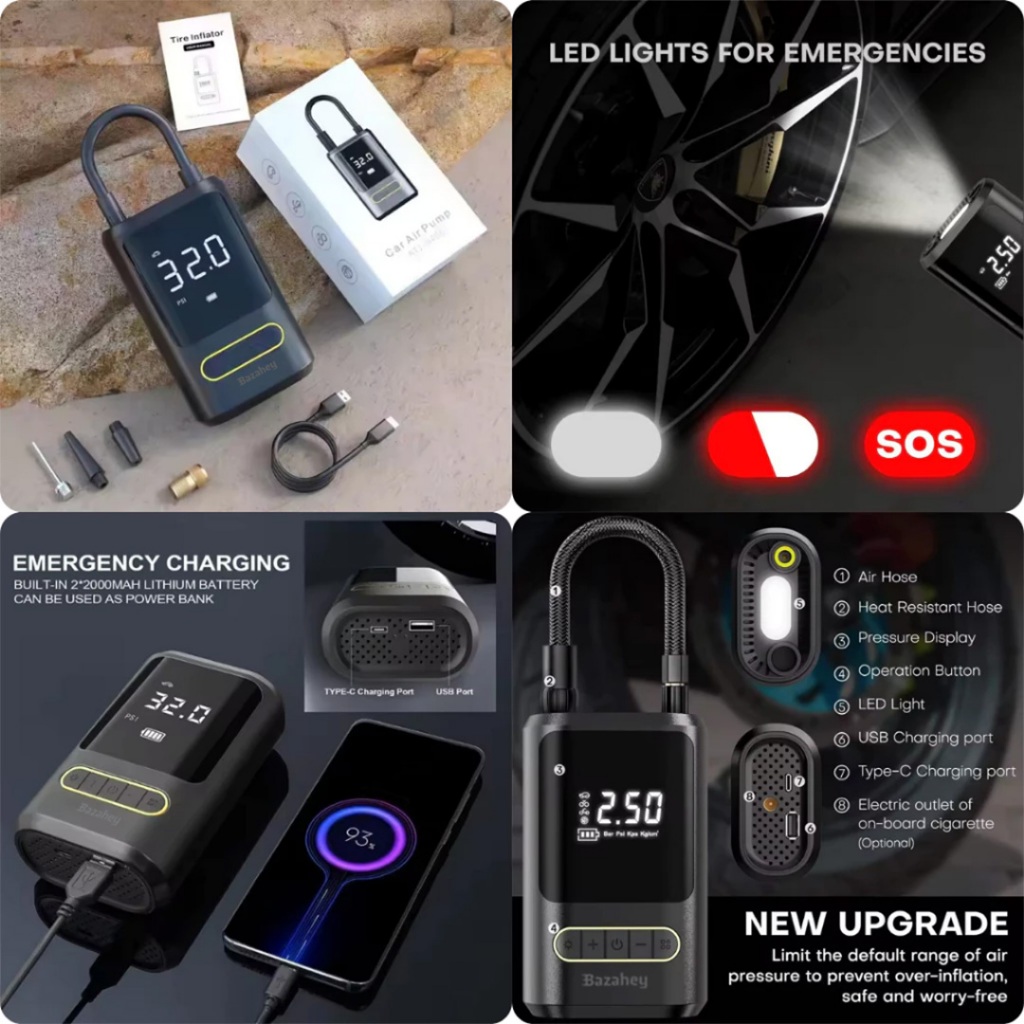 Electric Portable Mini Car Air Pump Rf‑Ap10Hh Tire Inflator With 4000Mah Powerbank & Led Display Usb Multifunction For M