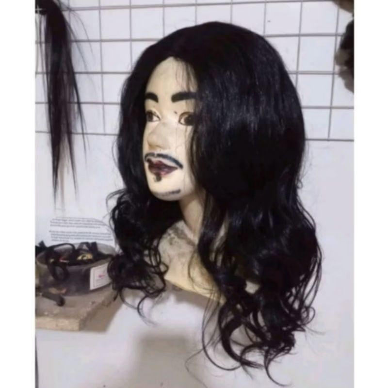 WIG COWOK RAMBUT PALSU PRIA GONDRONG BELAH TENGAH IKAL WARNA HITAM GRATIS WIGCAP