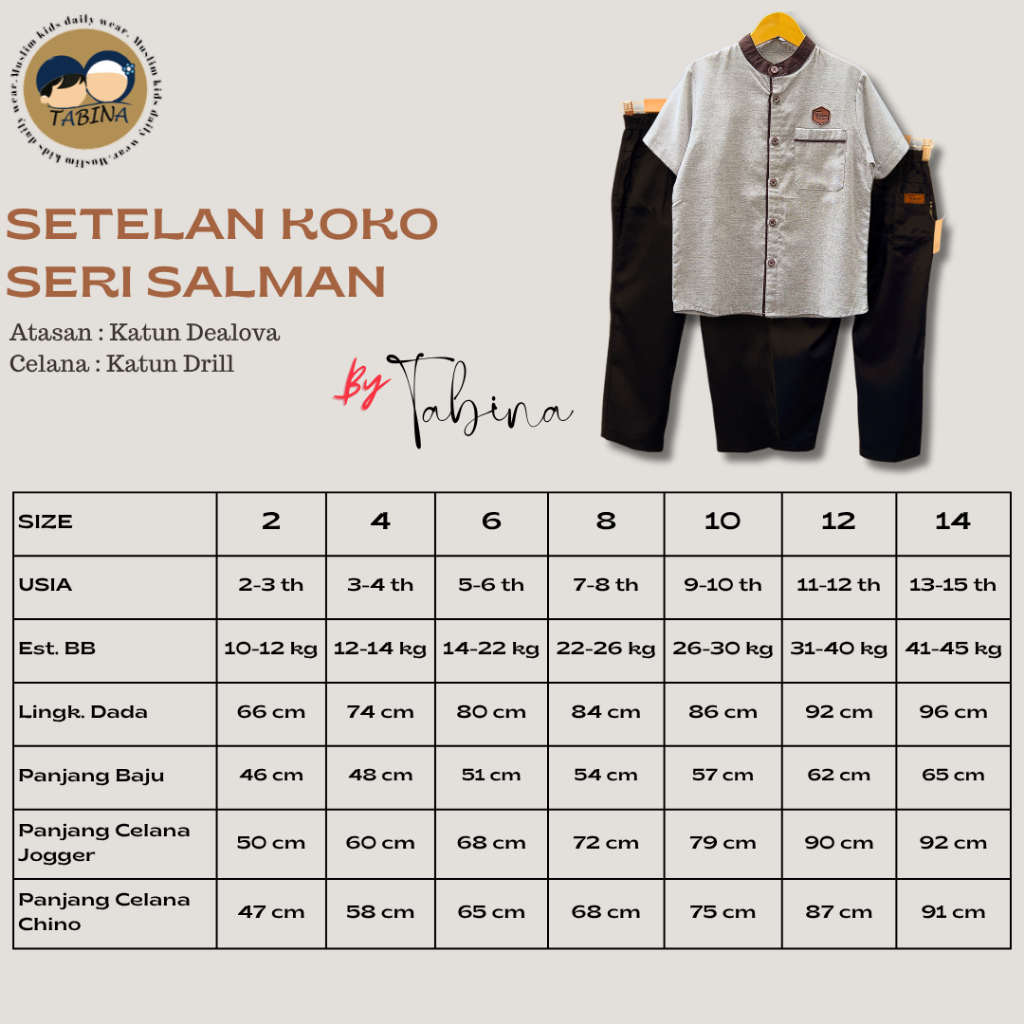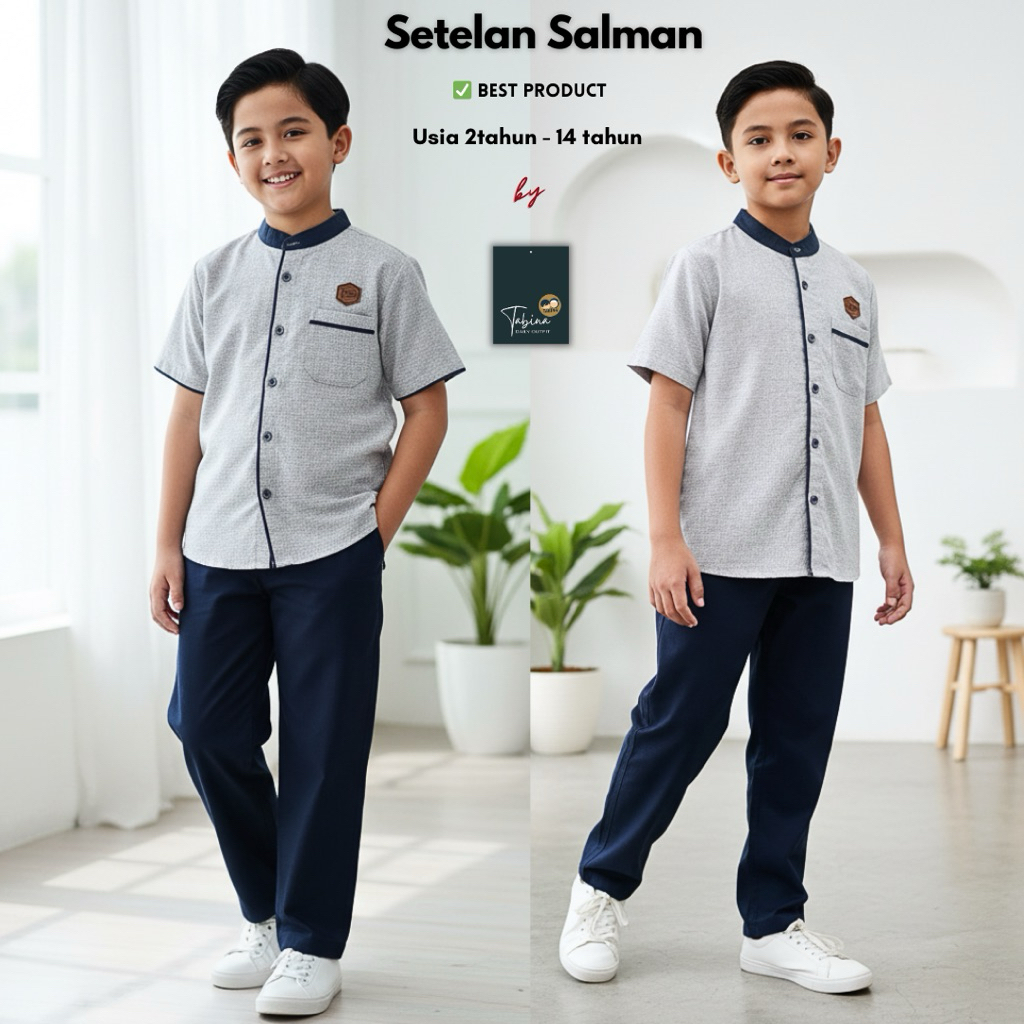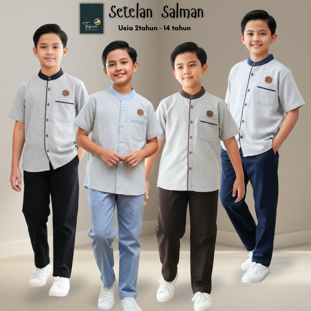Atasan & Setelan Kemeja Koko Anak Laki Laki Lengan Pendek Tabina seri Salman usia 2 hingga16 tahun