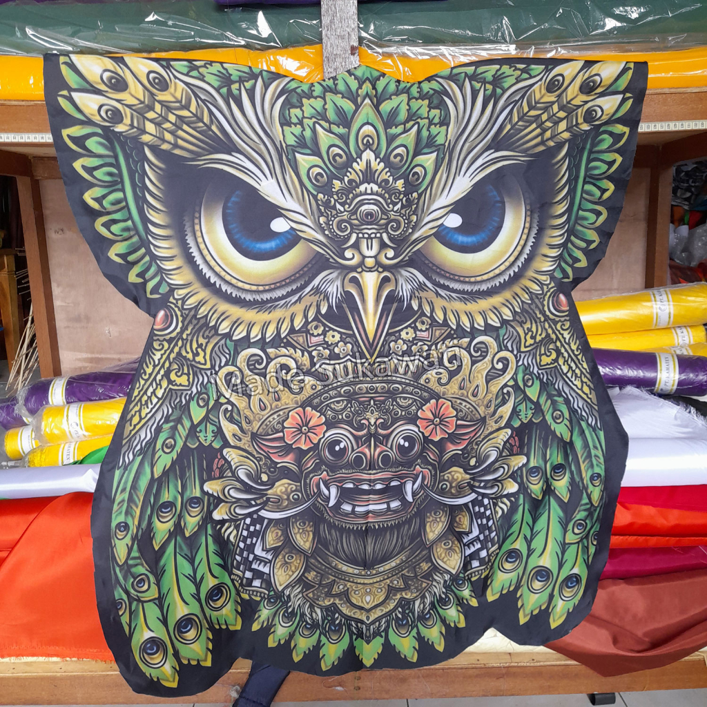Layangan kain celepuk printing burung hantu knockdown bongkar pasang