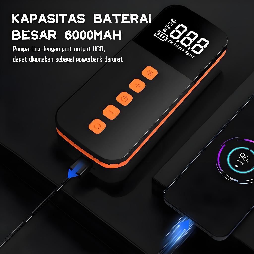 Air Pump Tire Inflator Elektrik Pompa Ban Mobil Portable Pompa Angin Ban Motor 6000Mah