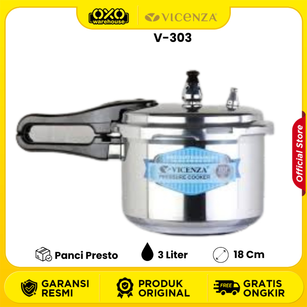 Panci Presto Vicenza 3 Liter V303 Pressure Cooker (18Cm) Garansi Resmi Original