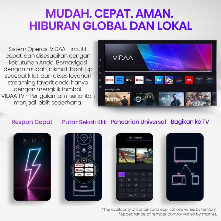 Hisense TV 32E4H Vidaa Smart Digital TV 32 inch HD Desain Bazelles DTS V X & Dolby Audio Youtube/Netflix/Prime Dual Band