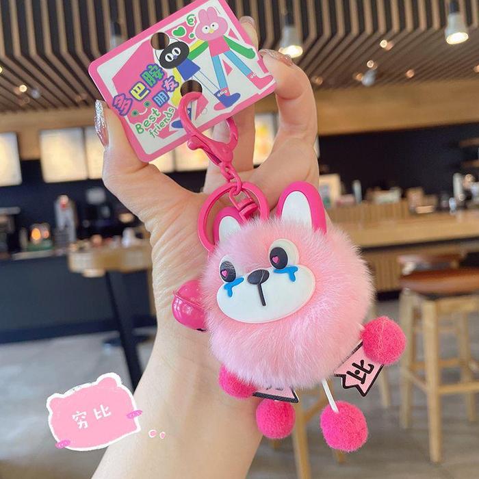 AB118 Gantungan Kunci Lucu Motif Animal Keychain Accecories Animal Cry Bag Keychain Gantungan Kunci Bulu - AB118 PINK