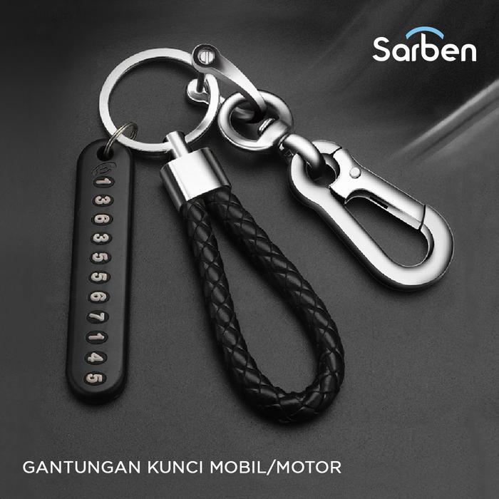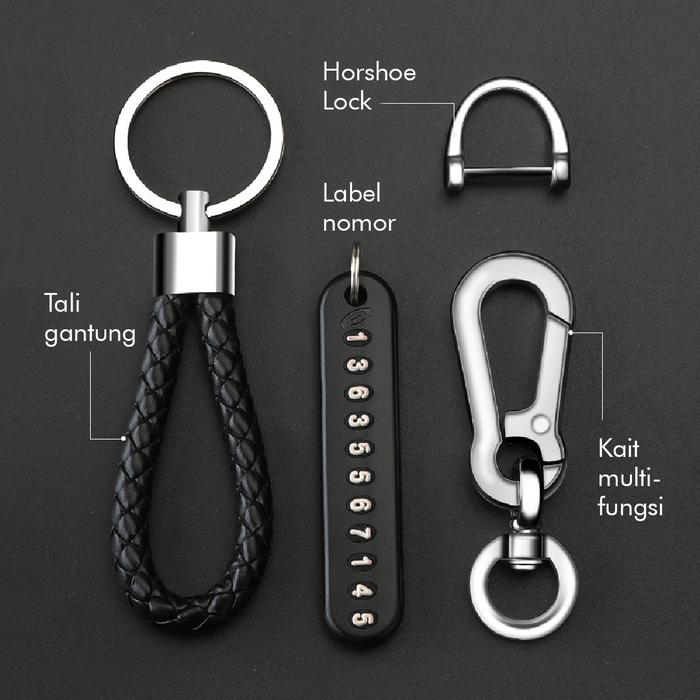 Set Gantungan Kunci Mobil - Aksesoris Kunci Mobil - Stylish Metal Keychain Hitam Abu muda Tali - (Full Set) Abu muda
