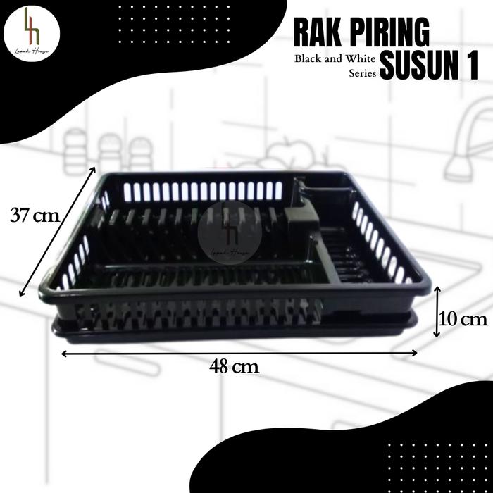 Rak Piring Plastik Super Susun 1 Hitam Putih+Water Tray(Penampung Air)