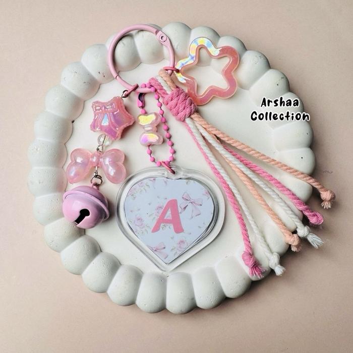 Gantungan Huruf Alphabet Bag Charm Keychain Abjad Akrilik Bag Charm Keychain Mac rame - BagCharm PINK A
