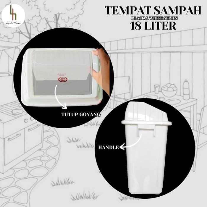 Tempat Sampah Tutup Goyang 18 Liter Hitam Putih / Tempat Sampah Goyang / Tempat Sampah Ruangan