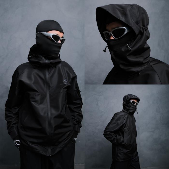 Jaket Gunung Gorpcore Waterproof Series Bayang Windbreakers Hitam - Hitam M