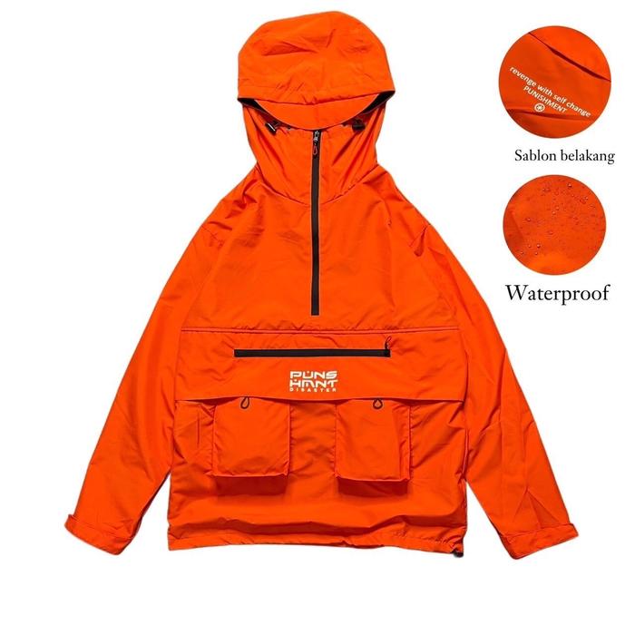 Hustle - Jaket Gorpcore Outdoor Waterproof Bahan Parasut Orange Pria Wanita Jaket Olahraga Running Sport - Orange M