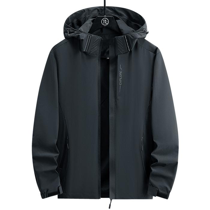 DISAI Jaket Pria Waterproof Anti Angin Jaket Satu Lapis Motor Pembongkaran Topi Outdoor Jacket J6628A - black M