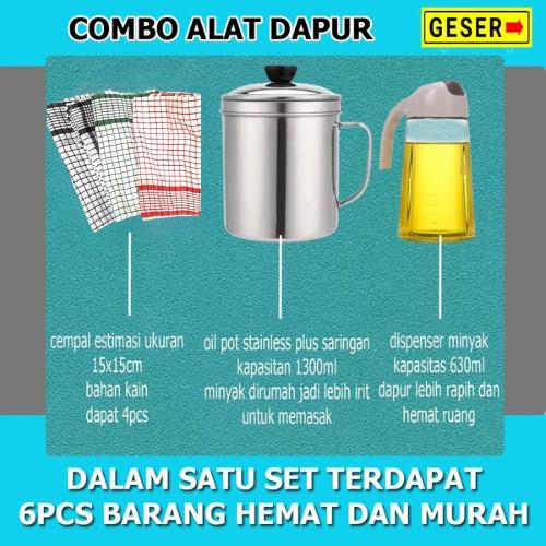 Combo Hemat 6in1 Oil Pot Stainless 1000ml Plus Dispenser Minyak 630ml Dan Lap Serbet 4pcs
