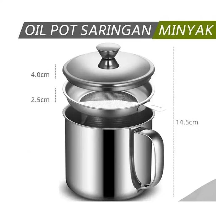 AARON.ID | OILPOT STAINLESS 1LITER TEMPAT SARINGAN MINYAK BEKAS PAKAI