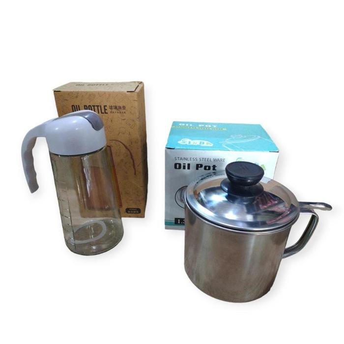 PAKET OIL POT 1.2 L & BOTOL MINYAK KACA 630 ML Wadah - STANLEES