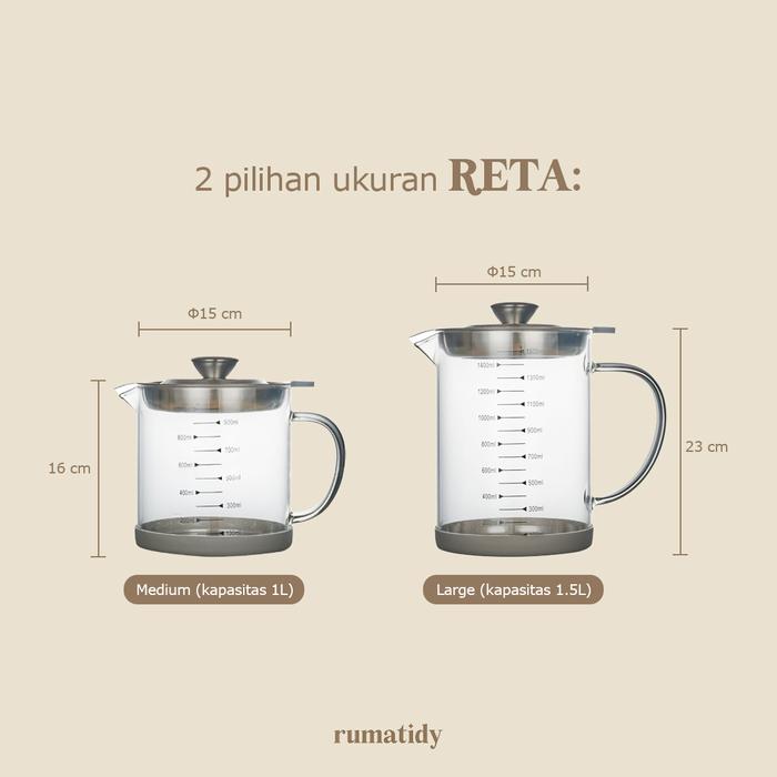 RETA Oil Pot Saringan Minyak Kaca Wadah Tempat Saringan Minyak Transparan 1L dan 1.5L - RETA M (1 Liter) PACKING BIASA