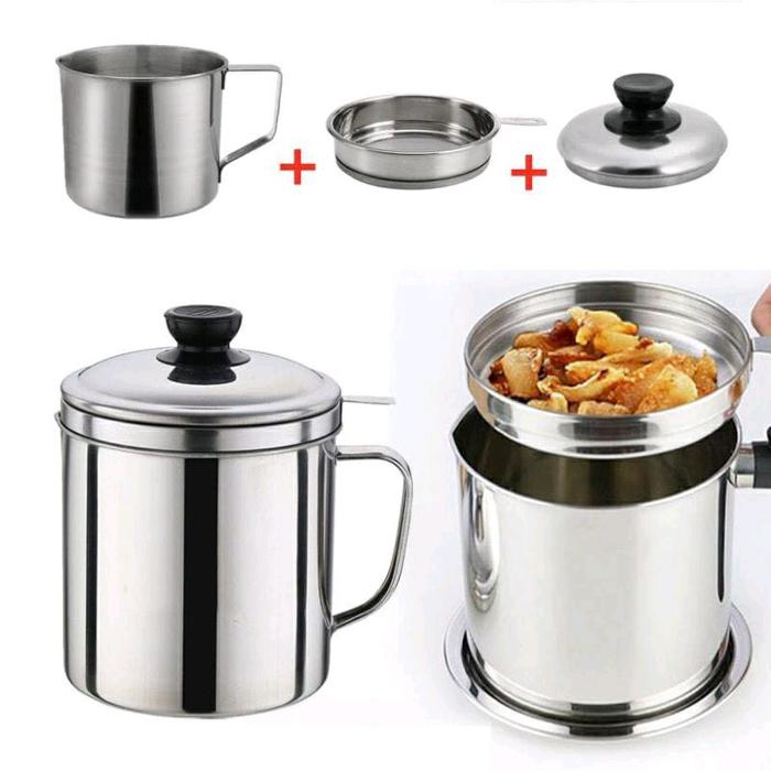 (PS) OILPOT 1 LITER STAINLESS SARINGAN MINYAK - Gelas Saringan Minyak Stainless Kapasitas 1 Liter