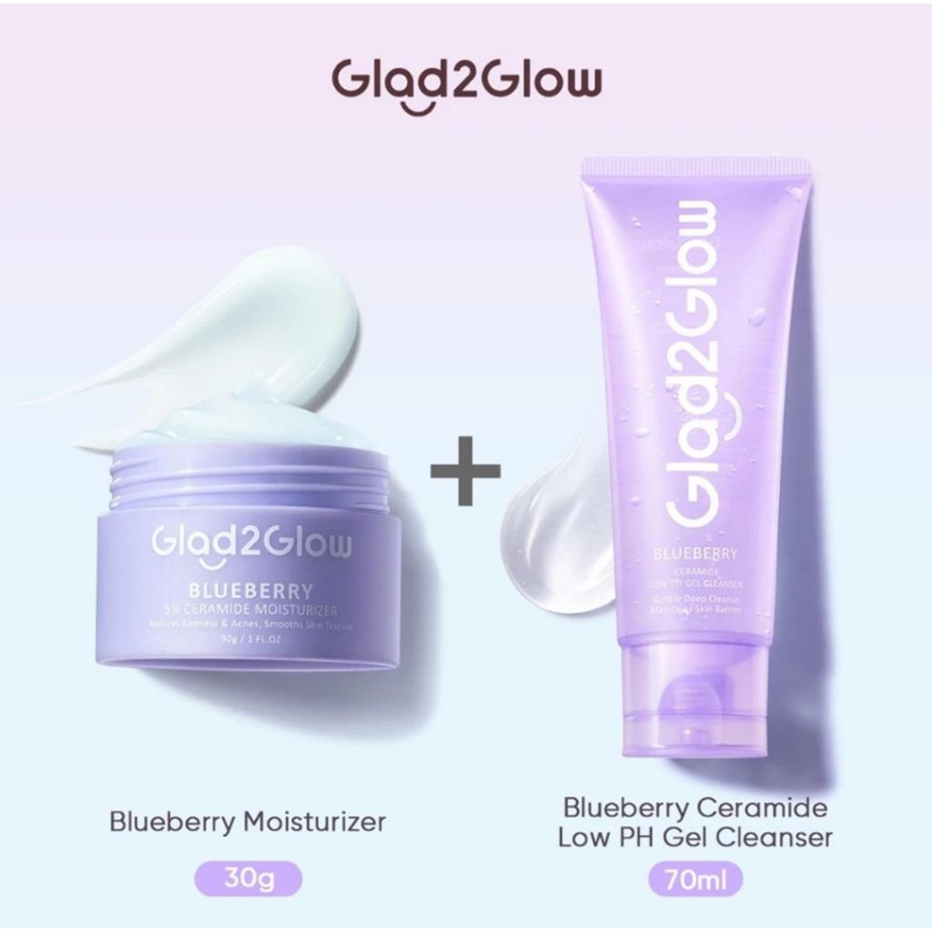 Glad2glow Paket Blueberry Ceremide Barrier Moisturizer dan Low PH Cleanser