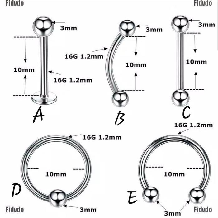 1PCS/5PCS/10PCS ANTING EARRING LOBE EYES LIPS HELIX TRAGUS STAINLESS STEEL 1.2/10/3/3 PIERCING BODY JEWELRY - TIPEA, 10P