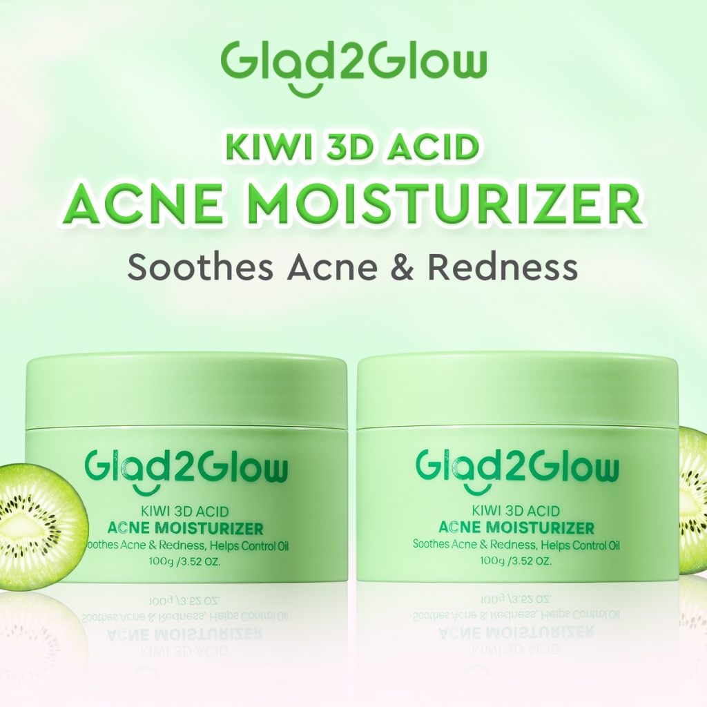 GLAD2GLOW Kiwi 3D Acid Acne Moisturizer 100g Pelembab Wajah Jerawat Mencerahkan Pencerah Wajah&Penuaan Hilangkan Flek &