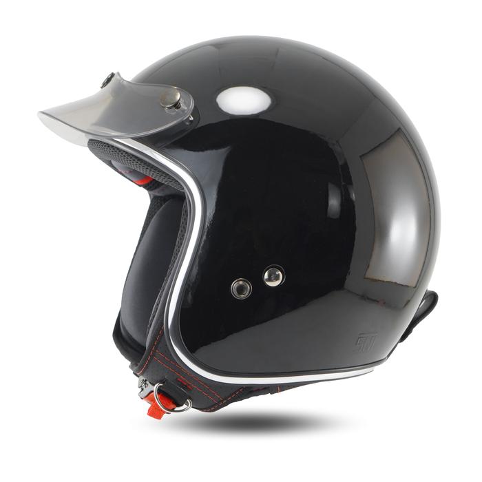 JITSU BOGO PREMIUM SOLID SNI TERBARU HELMET KACA ATAU PET MOTORCYCLE HELM RETRO - HITAM GLOSS, PET SLIM RED