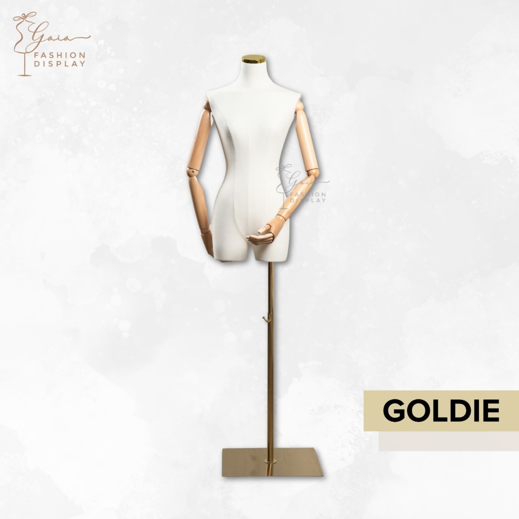 Patung Manekin kuning mengkilapIE Manekin DM Topi kuning mengkilap Tangan Robot Kayu Asli Dm Cewek Tiang Besi kuning mengkilap - BH