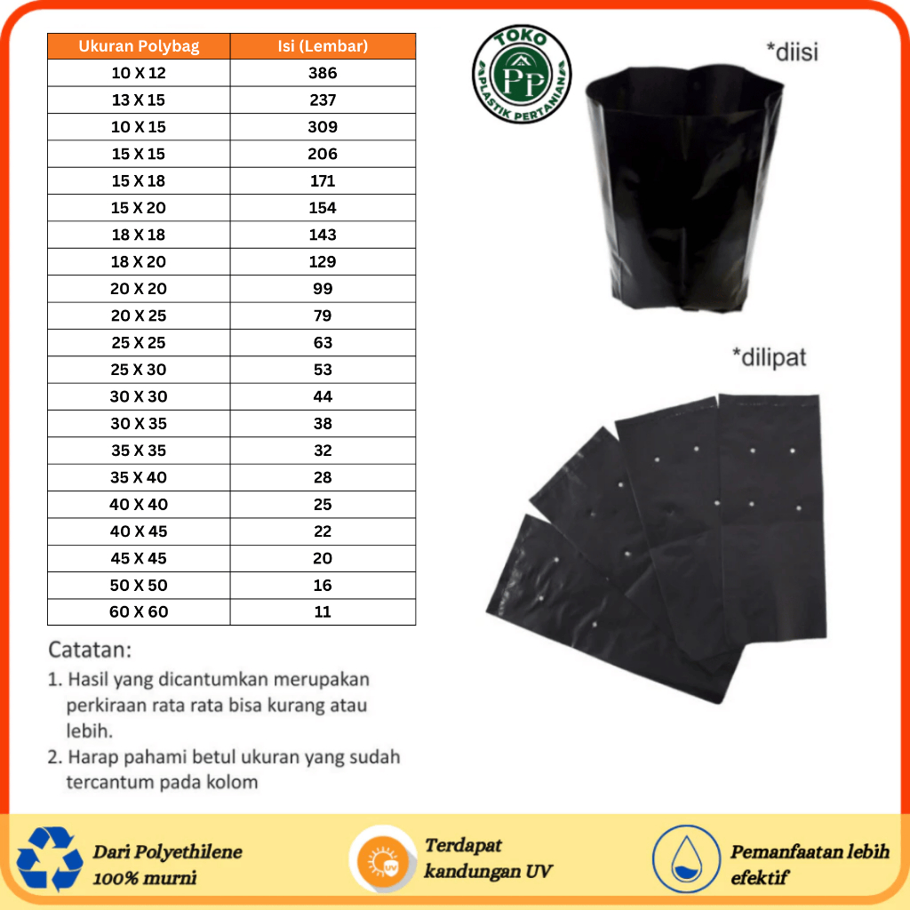 Polybag / Polibag / POLIBEG Media Tanam Berbagai Ukuran