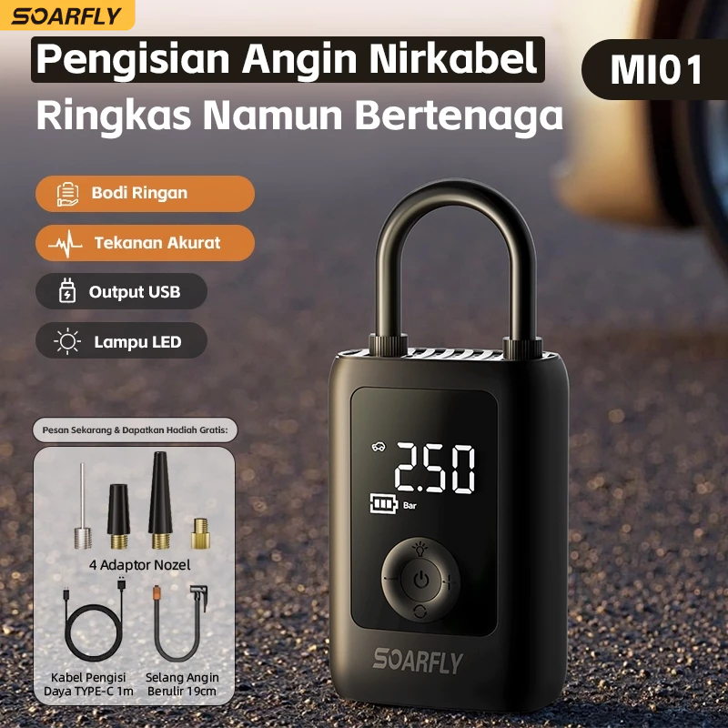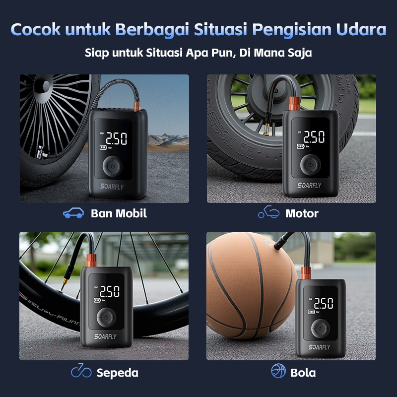 Soarfly Pompa Ban Motor Dan Mobil Electric Air Pump Car Air Pump Tire Inflator Portable Mini Pompa Angin Elektrik 12000M