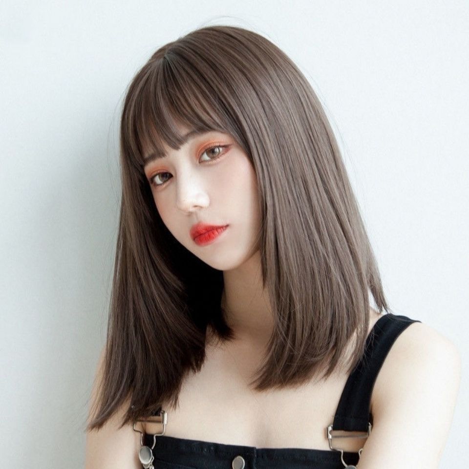 Wig untuk rambut palsu wanita dengan rambut sedang dan panjang, kepala penuh tulang selangka realistis rambut lurus pend