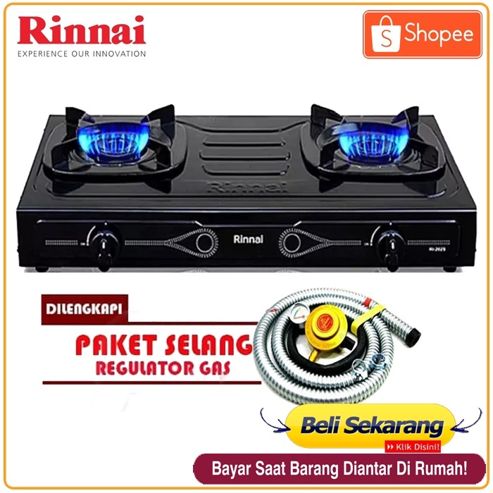 Paket Kompor Gas Rinnai Ri-202S / Kompor Gas 2 Tungku Teflon Free Selang + Regulator Ful Set Lengkap