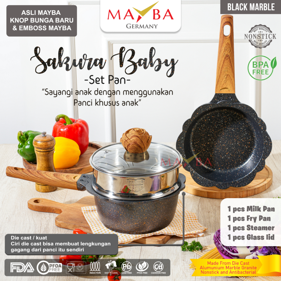 PANCI SET BAYI Sakura Flower Healthy BIRU mpasi baby bayi susu fry pan frypan mini marble keramik mayba miracle cookwar set 3 5 pcs diatas granit teflon